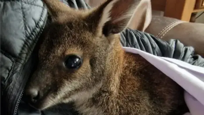 This little wallaby was found alone, too young to survive on his own. Rescuers believe his mother passed away unexpectedly, leaving him without the warmth and security he desperately needed. For animals like wallabies, the bond between mother and joey is vital. In the pouch, they are kept safe, fed, and reassured by a heartbeat they know by instinct. Without her, the young joey faced an uncertain future.