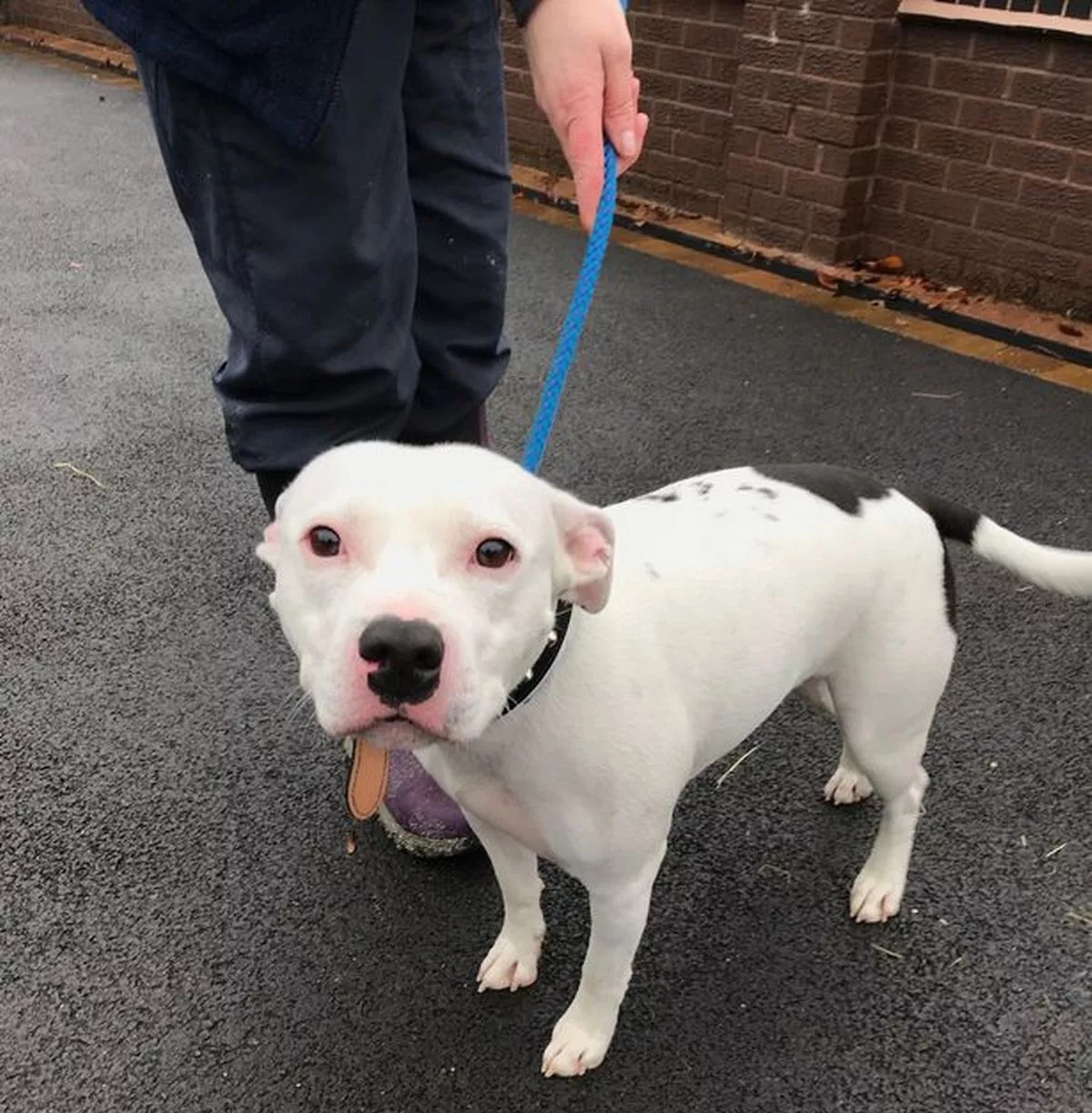 For now, the Staffordshire bull terrier type rests in safe hands, with a chance at a brighter tomorrow. And though he may not understand why the car drove away, those who now care for him hope to show him that new beginnings are possible.