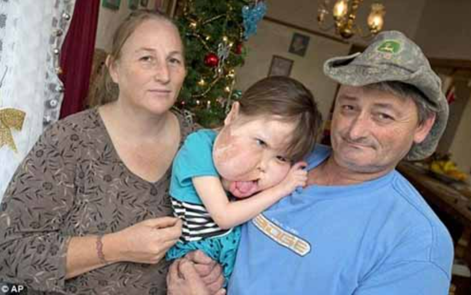 Katie Renfroe, 4, from Paxton, Florida, USA, was born with a genetic disorder called megalencephaly (large brain disease) that causes her face to have very strange abnormalities.