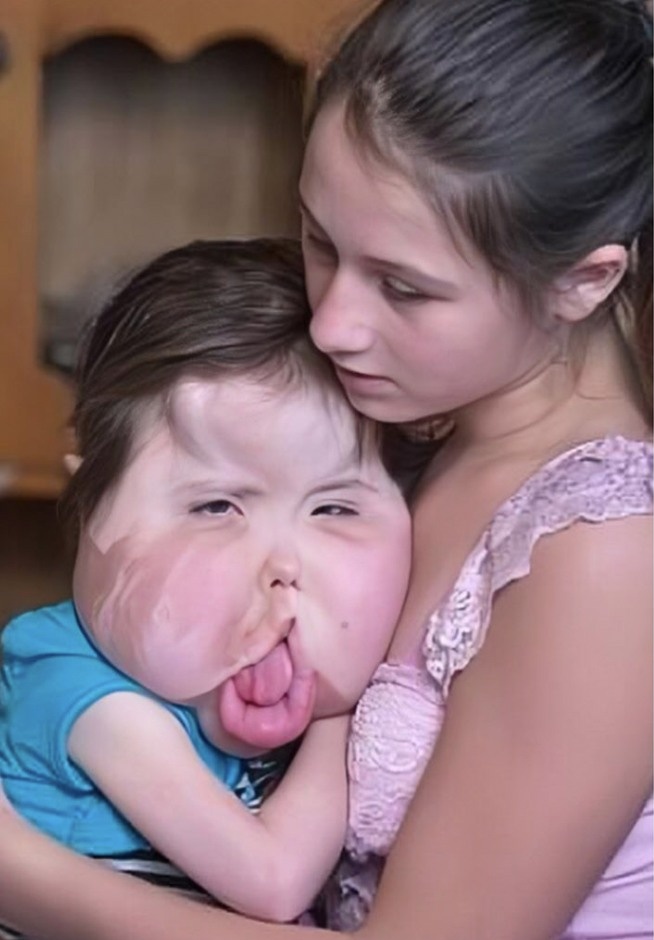 Katie Renfroe, 4, from Paxton, Florida, USA, was born with a genetic disorder called megalencephaly (large brain disease) that causes her face to have very strange abnormalities.