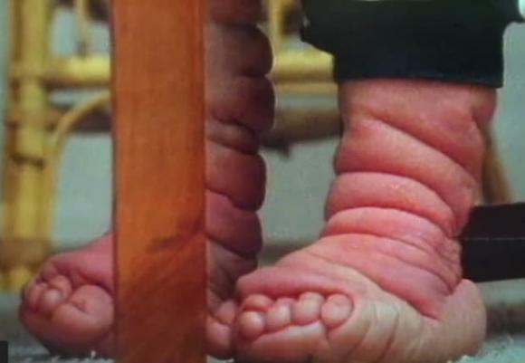 It is known that at that time, the amount of skin on Tomm’s body was equal to the amount of skin of a 5-year-old baby. Her limbs all became big, looking like they were swollen.