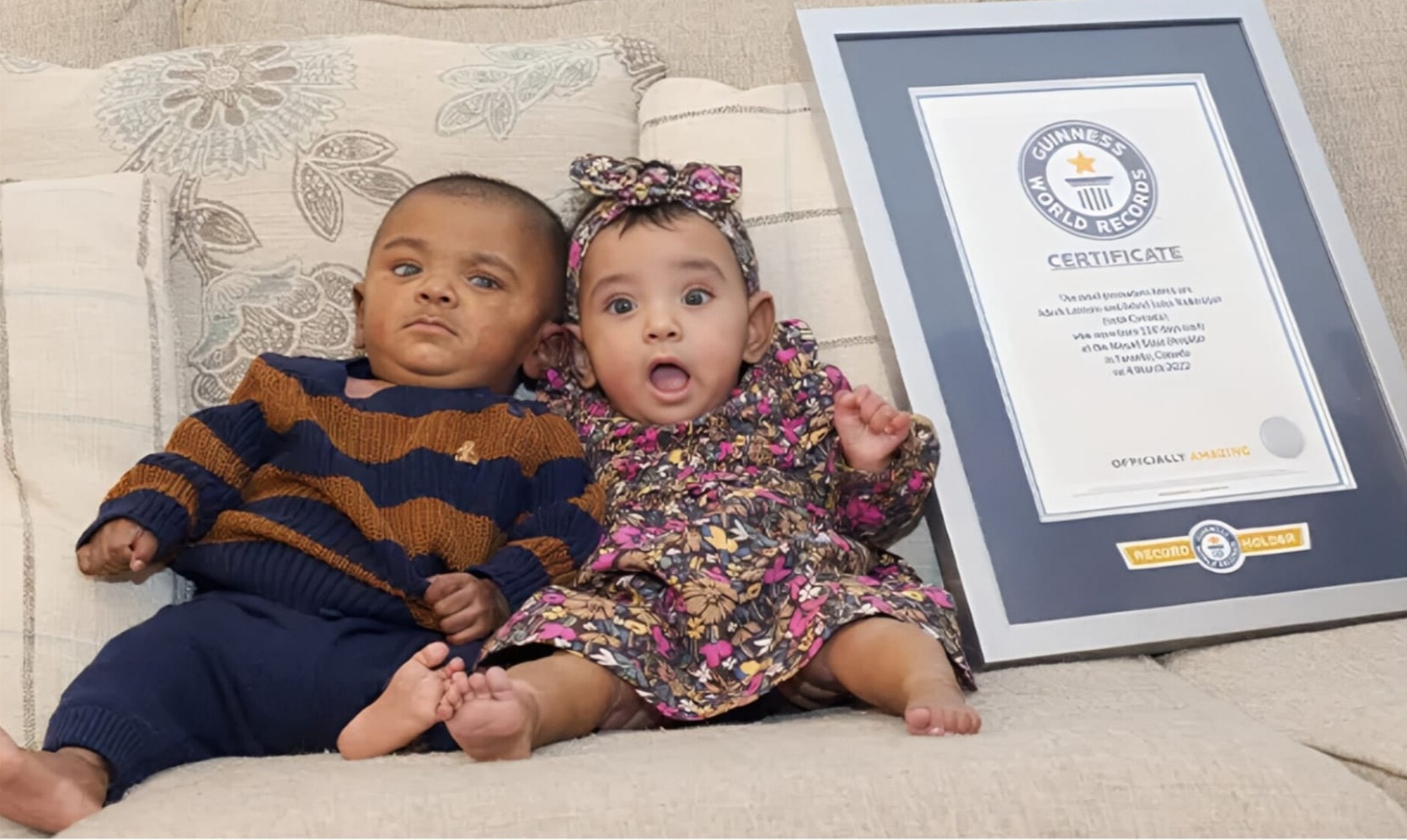 Adiah and Adrial Nadarajah from Ontario, Canada, have made history after being officially recognized by Guinness World Records as the world’s earliest surviving twins. They were born on March 4, 2022, arriving 126 days ahead of schedule and each weighing less than one pound.
