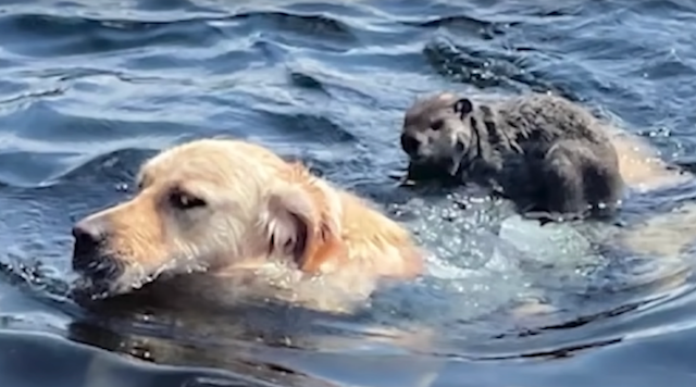 Wally the Golden Retriever befriends everyone he meets. Yet, he recently proved that his kindness goes beyond humans and dogs. During a swim one day, Wally met a woodchuck, who he graciously offered a ride. Even though the woodchuck only rode on Wally’s back for a short amount of time, they instantly became best friends. They even shared a heartwarming moment at the end.