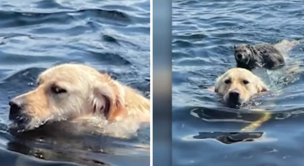Golden Retriever Wally Wins Hearts After Carrying a Woodchuck Friend Across the Lake