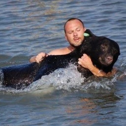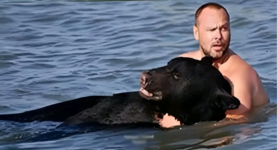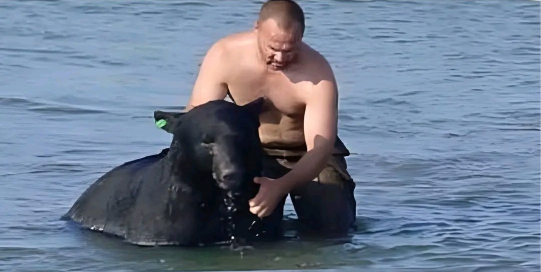 Just as it seemed the situation would turn tragic, a visitor from Russia, Ivan Stepanov, stepped forward. Without hesitation, he removed his shoes, entered the chilly water, and swam toward the struggling bear. Sliding his arms carefully beneath its neck, Ivan lifted its head above the surface, speaking softly in Russian as if to reassure the animal.