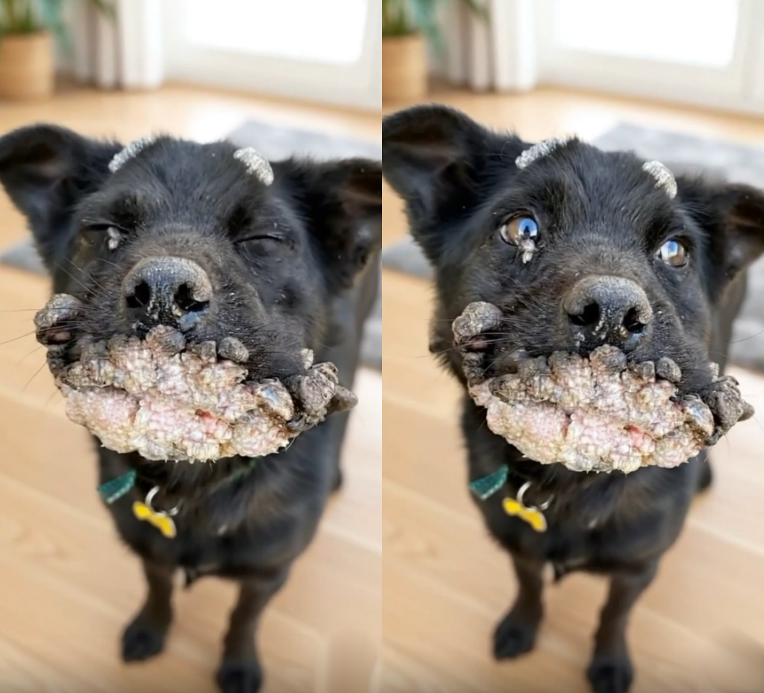 Buddy is a small dog whose life has been turned upside down by a devastating illness. Once an energetic puppy known for racing through fields and playing with boundless joy, Buddy is now facing a rare parasitic tumor that has altered his face beyond recognition. Each day is a struggle, as even the simplest acts—like breathing or eating—have become difficult.