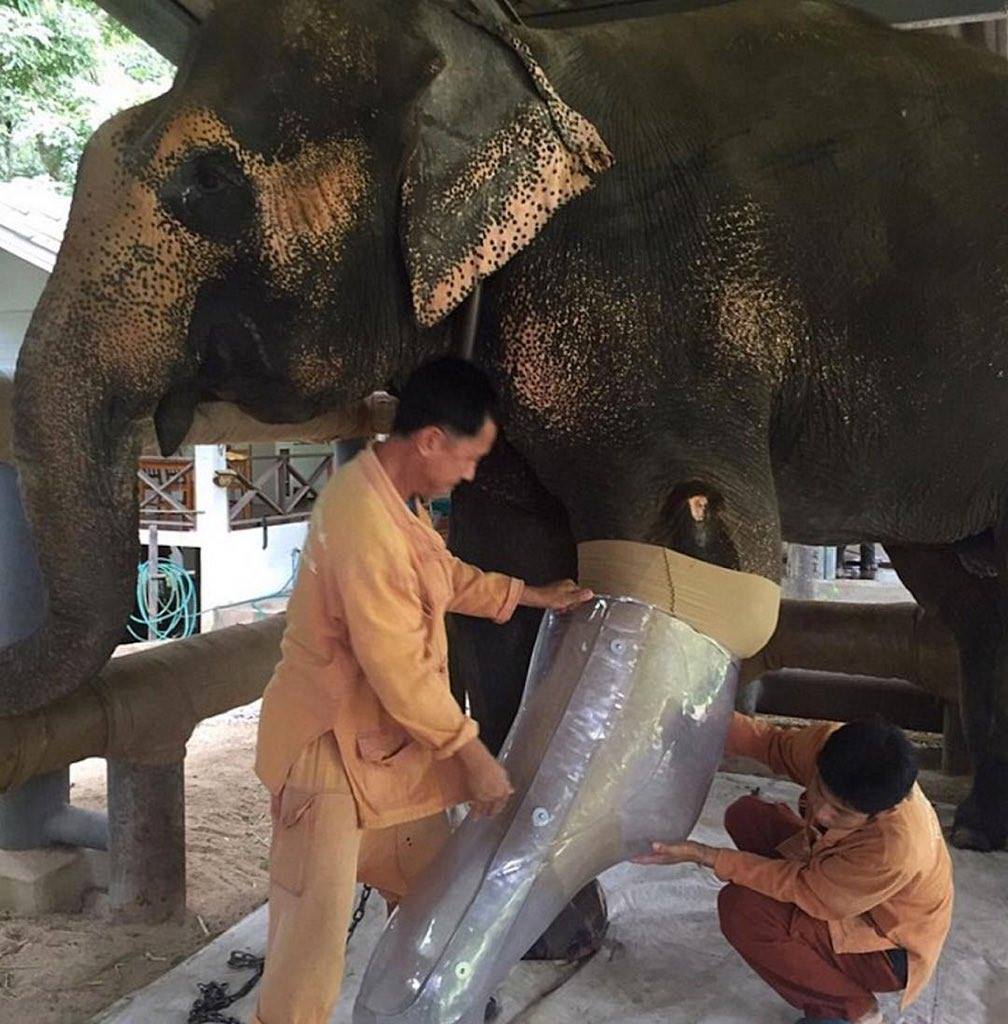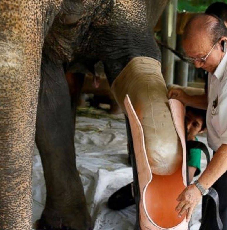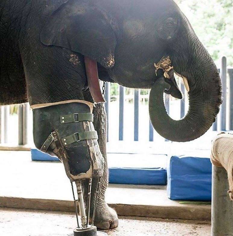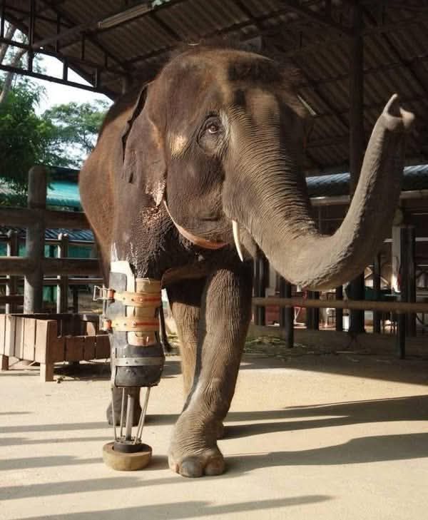 Mosha the elephant, a permanent resident of the hospital run by the Friends of the Asian Elephant foundation in Thailand, is the first elephant ever to receive an effective and functional prosthetic leg.